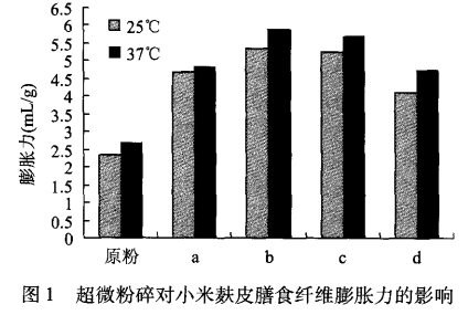 3. 超微粉碎小米麩皮膳食纖維膨脹力的測定