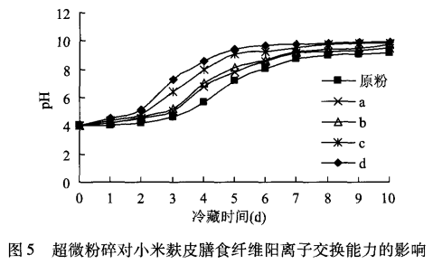2. 超微粉碎小米麩皮膳食纖維陽(yáng)離子交換能力的測(cè)定