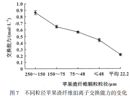 2. 不同粒徑蘋(píng)果渣纖維對(duì)陽(yáng)離子交換能力的影響