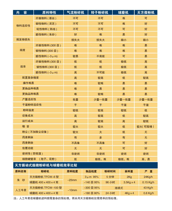 天方超微粉碎機(jī)與其他粉碎設(shè)備性能對(duì)照