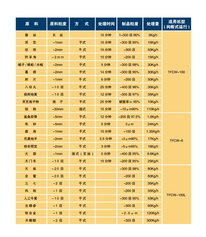 中藥粉碎設(shè)備性能對(duì)照表