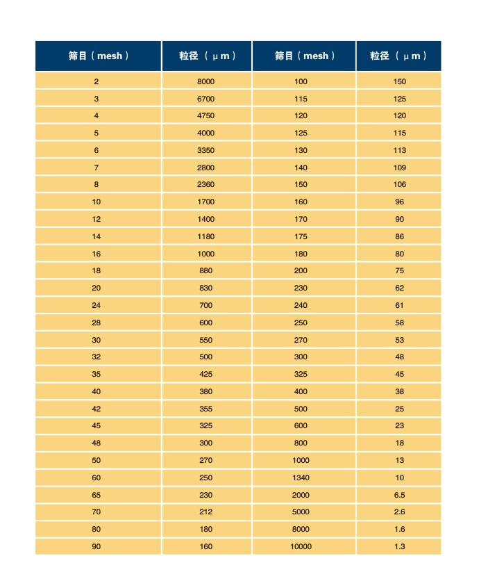 篩目/粒徑對(duì)照參考表(U.S.SCREEN目美國(guó)標(biāo)準(zhǔn))